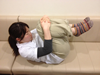 そのまま寝転がってかかとをお尻に近づけてあごを引き、息を吐きながらお腹を圧縮させ、しばらくそのままの体制を維持します。