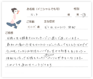腸オイルの施術を受けられた皆様からのお声をご紹介いたします。